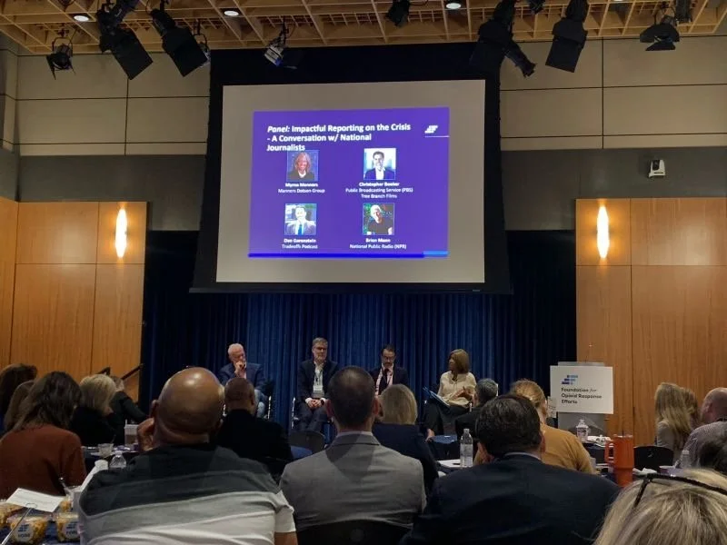 At the Foundation for Opioid Response Efforts’ All Grantee Meeting, Myrna Manners moderated a panel, “A Conversation with National Journalists: Impactful Reporting on the Crisis,” featuring Christopher Booker (PBS), Brian Mann (NPR), and Dan Gorenstein (Tradeoffs), who shared insights on covering the opioid and overdose crisis.